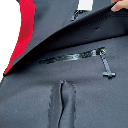 長時間着用される方に必須な小用ジッパーはドライスーツを脱ぐことなく用を足せるので男性から重宝されています。